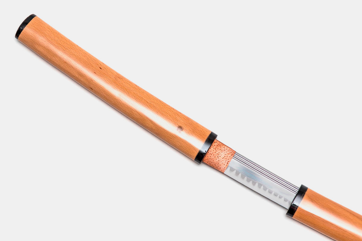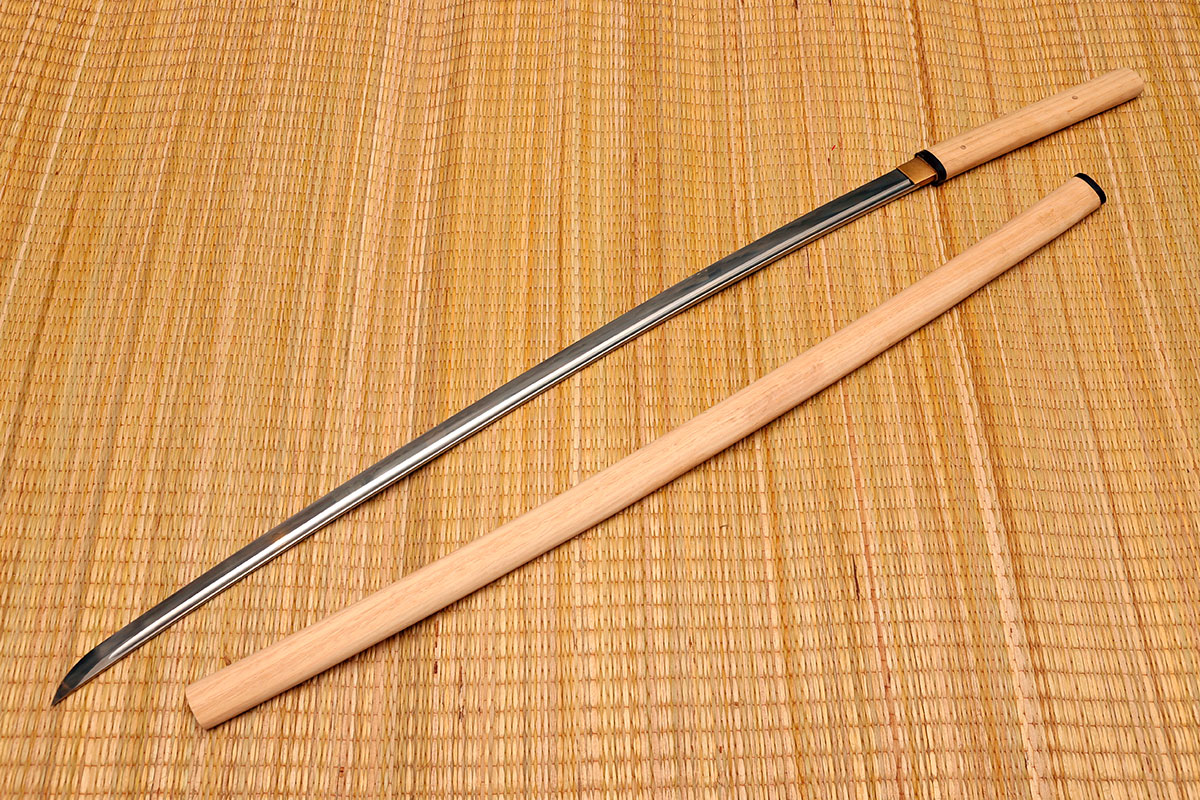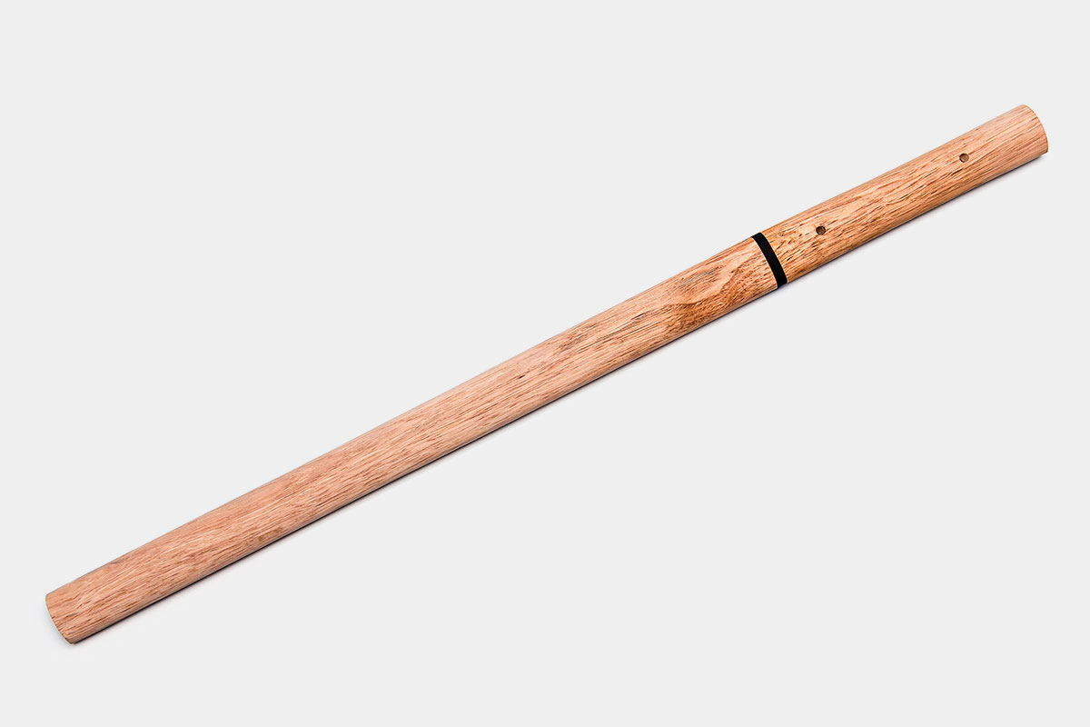 Tsuka 柄: Mango o empuñadura de madera, sin trenzado ni decoraciones, diseñada únicamente para facilitar el manejo básico durante su almacenamiento.