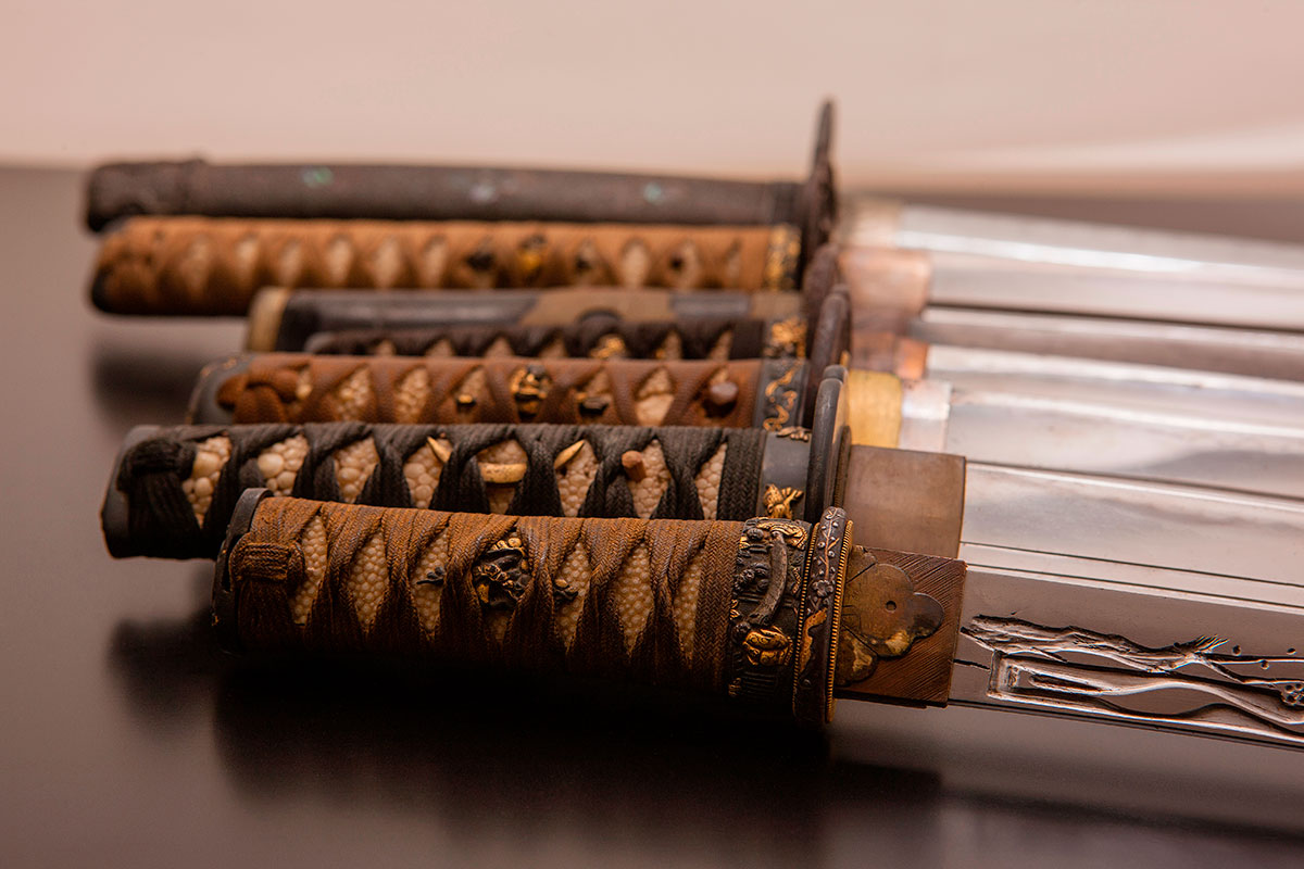 Menuki 目貫: aplicaciones metálicas ornamentales en los laterales del mango. También cumplen la función de dar firmeza al agarre de la espada.